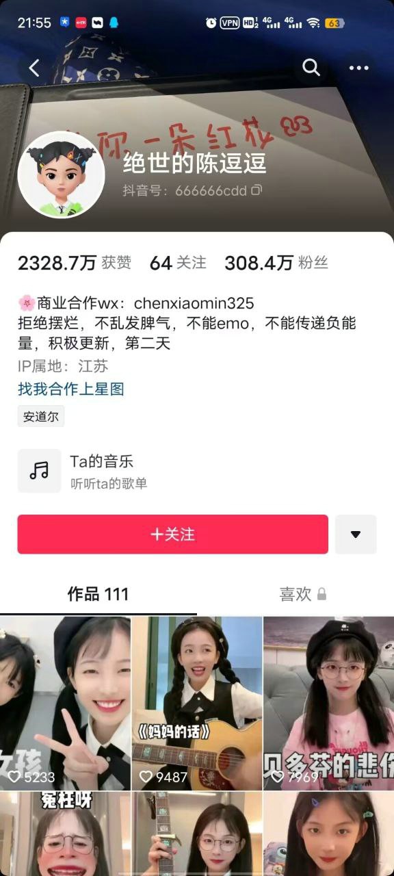 抖音300万粉丝【绝世的陈逗逗】颜射事件