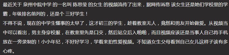 教室啪啪门 泉州中远学校初三三好学生【陈思莹】与男友教室啪啪视频流出