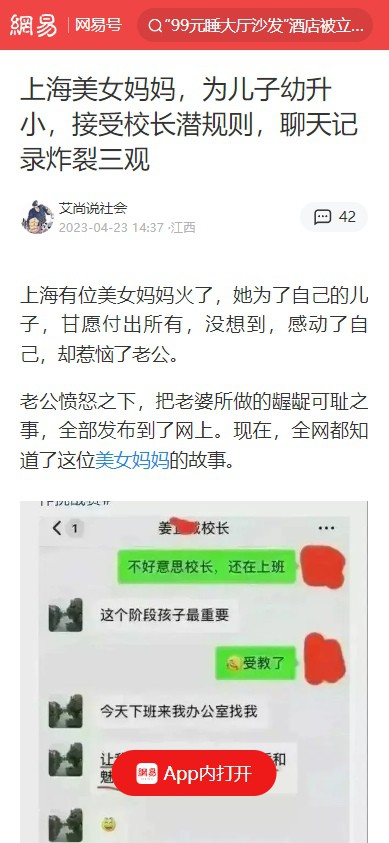 上海美女妈妈 为儿子幼升小 接受校长潜规则 聊天记录炸裂三观