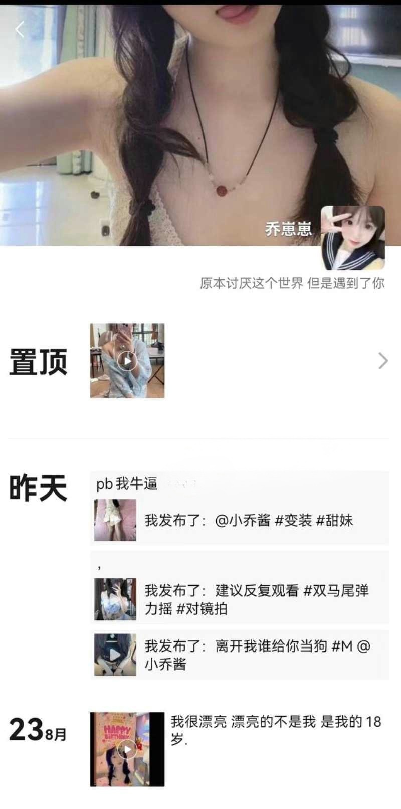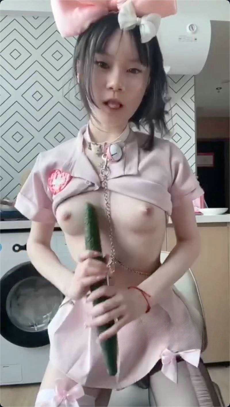 抖音小可爱网红【乔崽崽】戴狗项圈嘴里含酸奶用黄瓜插嘴 私下给榜一大哥发的福利视频曝光